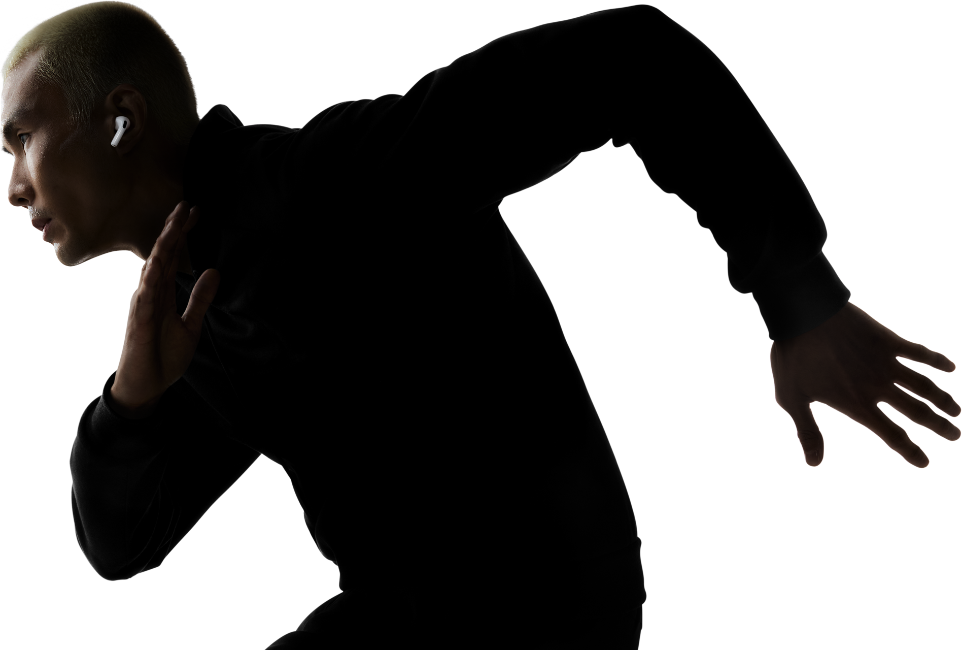 AirPods Pro 3 inserted in the ear of a dancer as they enjoy a hands-free listening experience