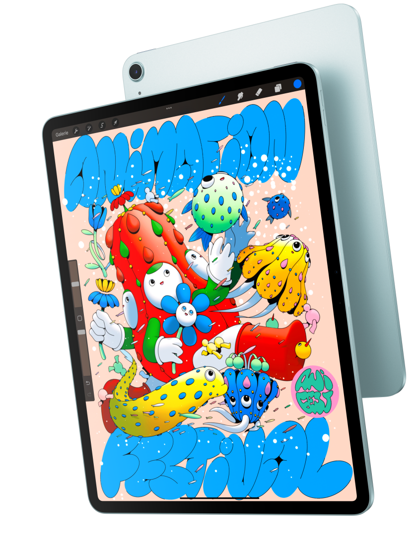 Vous avez le choix entre un iPad Air 11 pouces et un iPad Air 13 pouces, chacun doté d’un superbe écran Liquid Retina haute réso­lution qui donne un souffle inédit à tout ce que vous aimez. Plongez dans une expé­rience visuelle éclatante, réactive et d’une parfaite précision chromatique – en deux tailles.