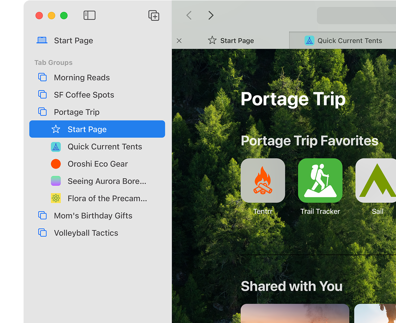 Safari Profiles allow you to separate your history, extensions, Tab Groups, favorites, cookies, and more. Quickly switch between profiles for topics you create, like Personal and Work.